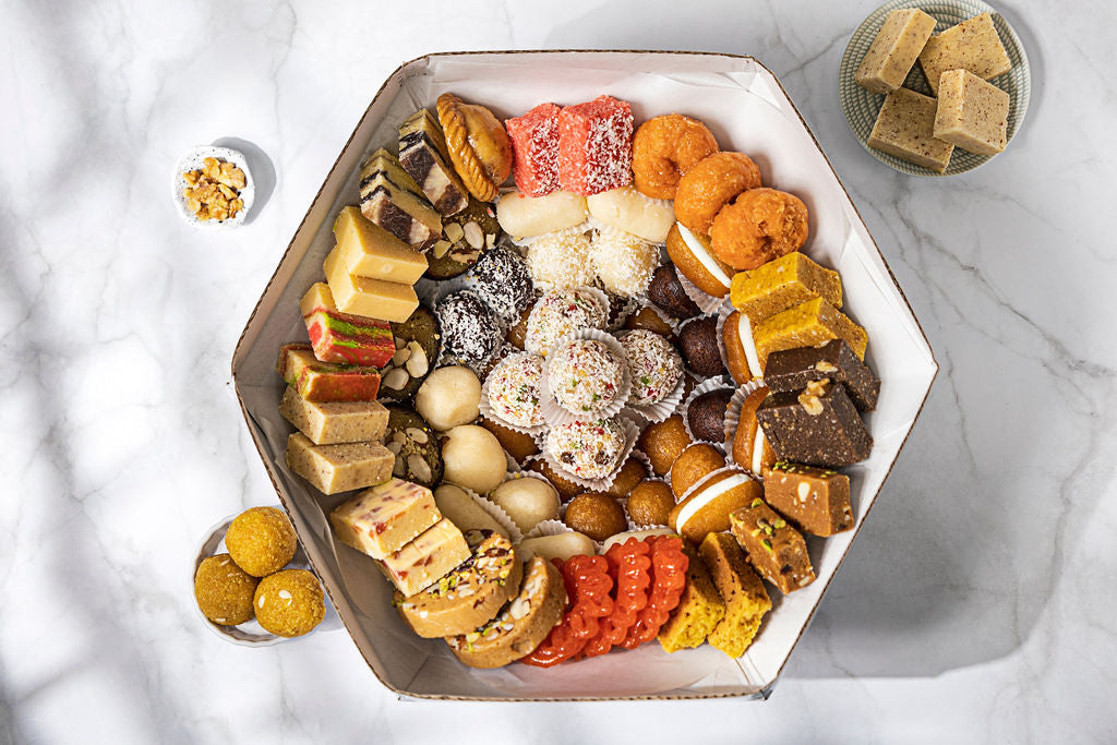 Explore our product menu, featuring our sweets and savouries, all meticulously handcrafted with the finest ingredients at our Toronto store.